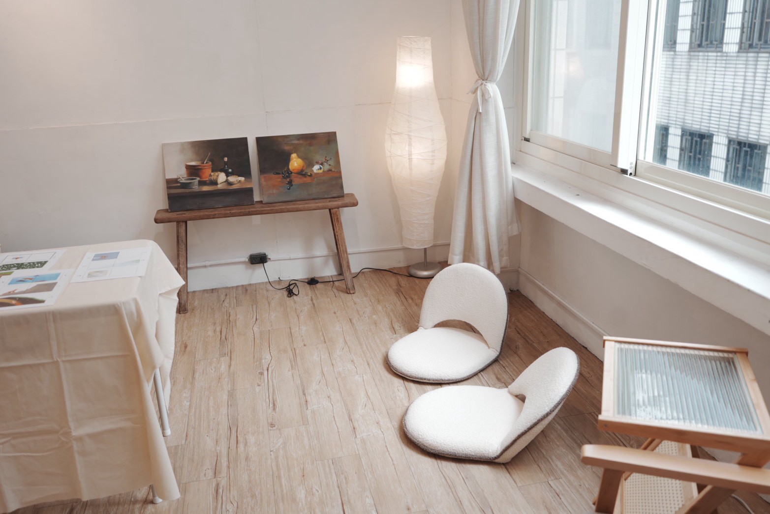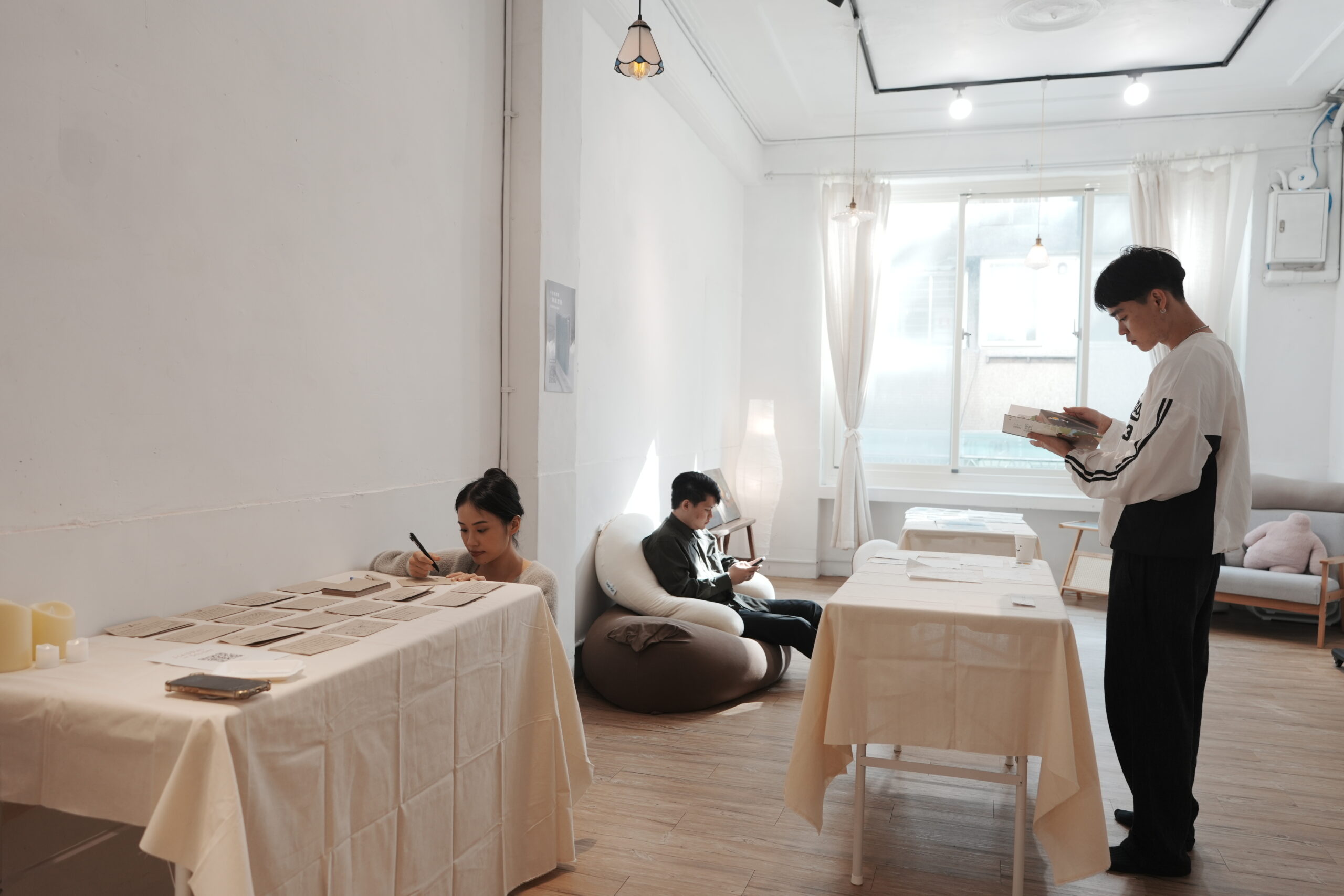 「在此室安靜舒服的空間裡,我和來看展的人可以輕鬆聊天、交流。感覺展場不只是展場,更是一個可以慢慢說話、分享想法的地方。」
