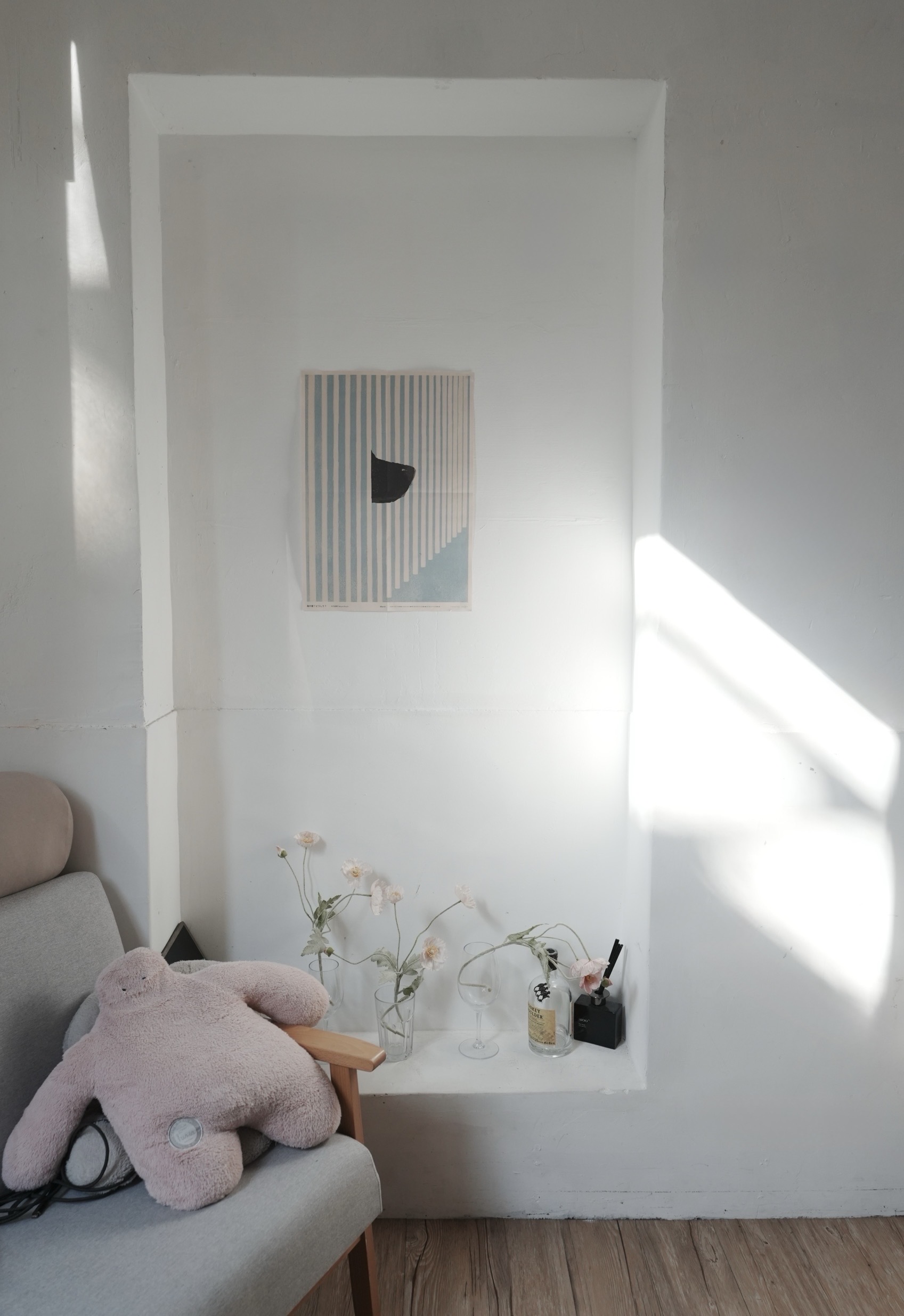 「謝謝此室讓我完美呈現腦袋裡最溫馨的角落。在放鬆的空間裡,我發現來訪者平均都有停留 30 分鐘,慢慢感受作品,甚至靜下來寫信跟我交流。」